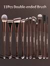 MAANGE 11件/16件套专业双头铝制面部化妆刷套装,包含散粉刷、腮红刷、遮瑕刷、高光刷、晕染刷、粉底刷、轮廓刷、晕染刷、眼影刷、眼线刷、眉刷、睫毛刷,轻松打造精致妆容,多功能超柔软化妆刷套装