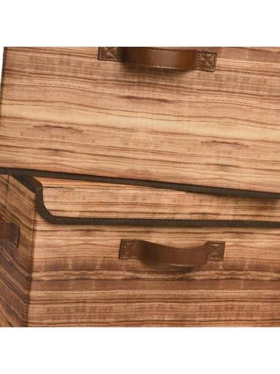 Storage Boxes With Lid Fabric Storage Bins With Lids Decorative Closet Storage And Organizer Wood Grain Print Bins Storage Boxes For Organizing 2Pack - 棕色木版畫 - 查看 1