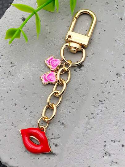 1 件女士新款合金红唇蝴蝶结装饰包饰钥匙扣,创意唇形钥匙扣金属钥匙扣配件汽车配件背包适合学校 - 彩色 - 查看 1