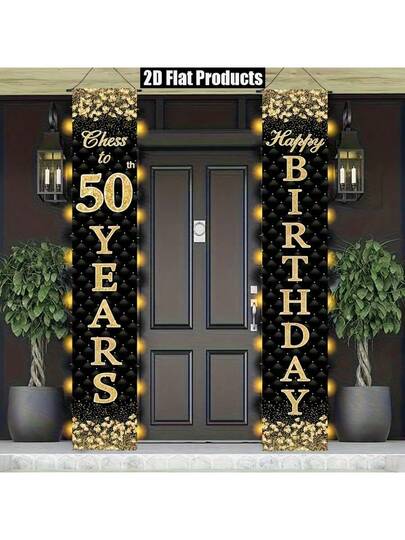 2 件 - 50 岁生日横幅和对联套装 - 黑金钻石主题 50 岁派对装饰 - 门柱对联、室内/庭院装饰吊旗 - 奢华闪亮碎钻背景,适合周年纪念、里程碑庆典 - 拍照亭道具、派对拍摄背景 - 50歲 - 查看 2
