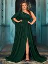 QOQ 简约优雅纯色不对称领口女士礼服夏季晚礼服适合晚会、生日派对、毕业典礼、舞会、联欢晚会