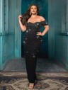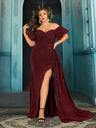QOQ 高贵大码礼服女士派对晚礼服,适合正式活动、生日派对、上流社会晚宴纯色花朵装饰露肩连衣裙