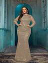 QOQ 优雅气质纯色烫钻立领长袖美人鱼礼服,适合宴会、晚会、生日派对