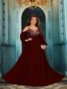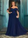 QOQ 优雅风格纯色加大码伴娘礼服长款晚礼服适合婚礼、正式活动甜心领交叉露肩雪纺礼服