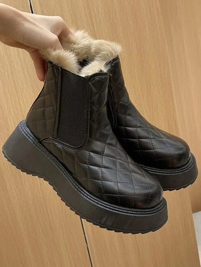 絎縫圖案加絨內裏切爾西靴 - 黑色 - 查看 1