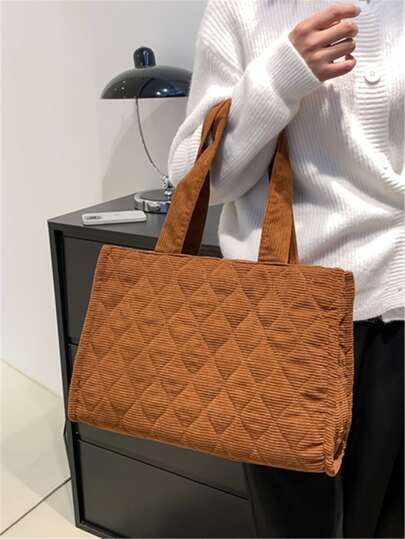 衍縫單肩托特包 - 棕色 - 查看 1