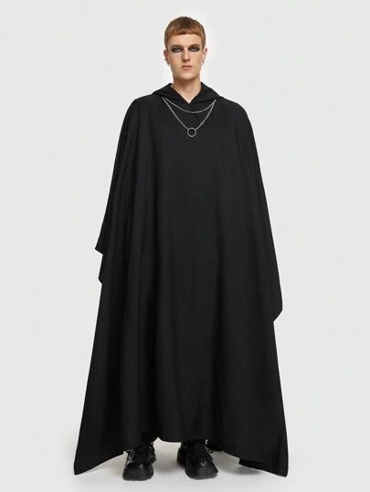 ROMWE MEN ROMWE Avant 男士素色連帽斗篷夾克 - 黑色 - 查看 1