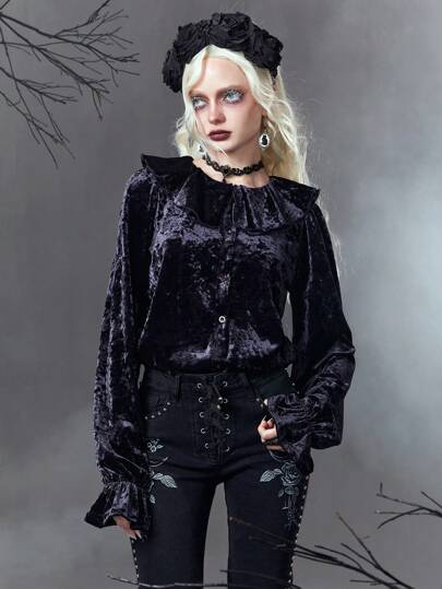ROMWE Goth 蕾絲邊飾優雅哥德風格上衣 - 紫色 - 查看 1