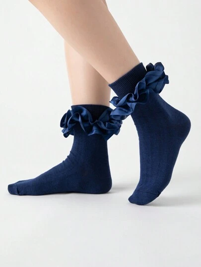 ROMWE Goth 女士荷叶边中筒袜 - 藏蓝色 - 查看 1