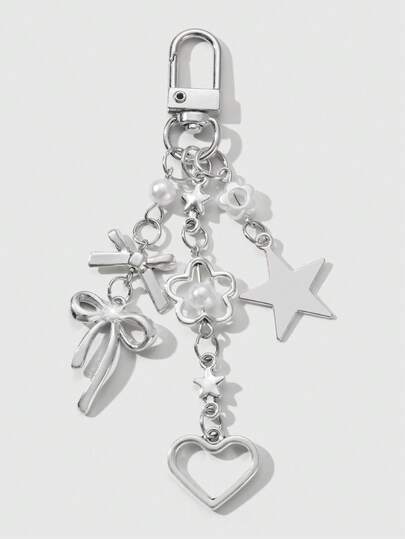 ROMWE Kawaii 1 件 Y2K 极简主义高端银蝴蝶仿珍珠镂空心形星形编织蝴蝶结 DIY 钥匙扣包饰,适合女士/女孩日常佩戴,节日礼物 - 銀白色 - 查看 2