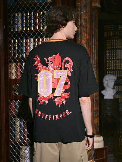ROMWE MEN Harry Potter | ROMWE 男士條紋圖案字母圖案T恤 - 黑色 - 查看 1