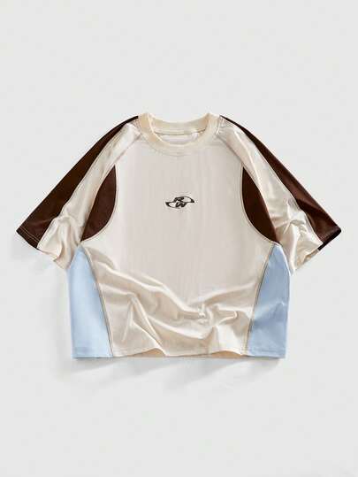 ROMWE MEN Street Life 男士休闲时尚街头通勤字母印花撞色插肩袖宽松T恤,夏季 - 白色 - 查看 1
