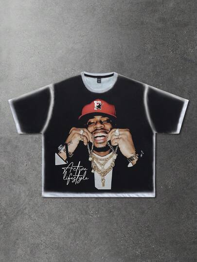 ROMWE MEN Street Life 男士休闲街头美式嘻哈肖像短袖T恤