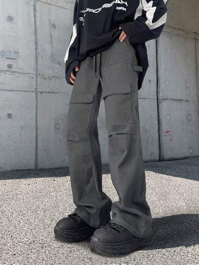 ROMWE MEN Street Life 男士有口袋工裝褲 - 灰色 - 查看 1