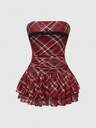 ROMWE Goth 学院风女式格子衬衫,荷叶边下摆,泡泡袖