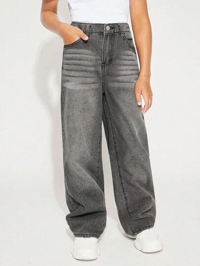 Radiana Tween 女童 Y2K 时尚复古水洗高腰猫须水洗宽松直筒牛仔裤,Tween 女童秋冬装返校街头服饰