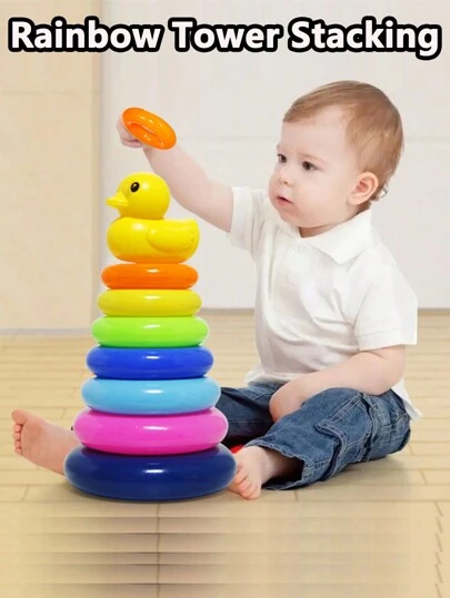 彩虹鸭子幼儿堆叠玩具,0-3岁婴幼儿益智玩具,学习用品,婴儿,儿童生日,万圣节,圣诞节礼物(手工测量可能有误差) - 彩色 - 查看 14