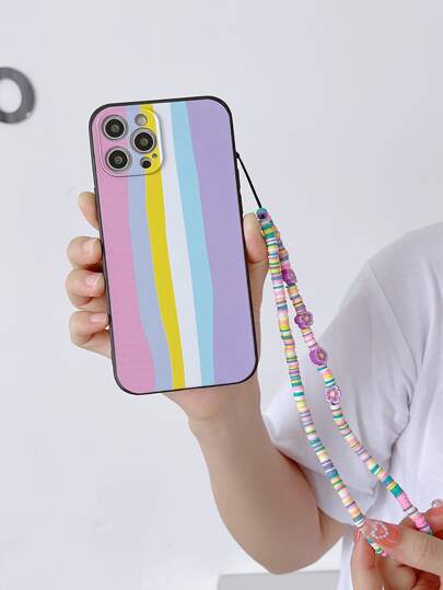 彩虹條紋手機外殼帶串珠手機掛繩 - 彩色 - 查看 1