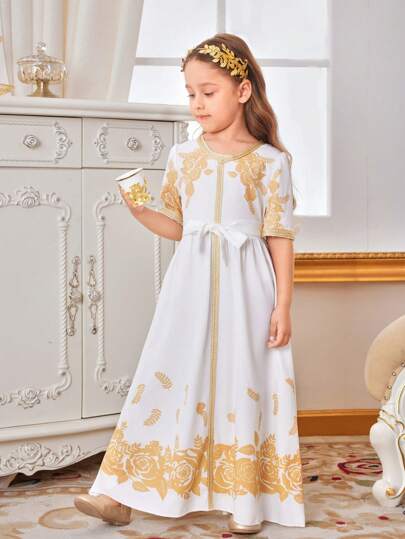 斋月女孩中东风格朴素金色丝带宴会礼服 - 金色 - 查看 1