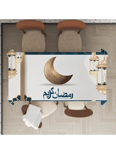 斋月系列,开斋节快乐,斋月节日装饰图案灯笼月亮节日祝福字母印花桌布,斋月/斋月,斋月 Kareem(快乐斋月),斋月快乐(斋月)桌布,隔热桌布,西式餐桌布,餐桌装饰 - 彩色 - 查看 24