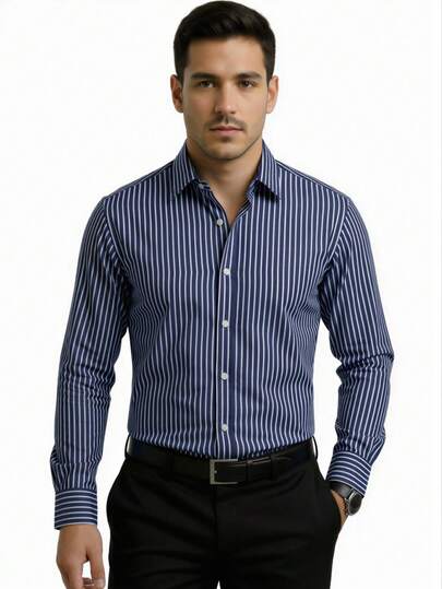 Rand paul Striped Long-Sleeved Dress Shirt With Refined Finish.