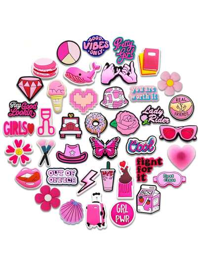 随机 8/20/30 件粉色系列鞋饰,适用于木屐鞋 DIY 装饰,优质流行饰物配件泡泡拖鞋凉鞋,PVC 鞋饰,沙滩包配件,适合青少年、男士、女士和成人的绝佳礼物 - 彩色 - 查看 4