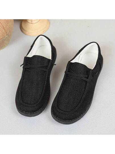 透气女士帆布鞋轻便休闲运动鞋,带足弓支撑,舒适全天穿着 - 黑色 - 查看 1