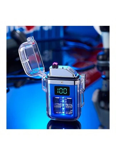 可充電無火防水防風脈衝弧形打火機,透明罩外出活動必備 - 藍色 - 查看 2