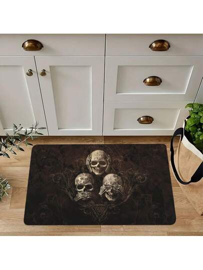 1件装柔软可水洗涤纶骷髅图案万圣节地毯,适用于客厅、卧室、游戏室和浴室 - 柔软家居装饰浴室配件玄关装饰厨房地毯 - 黑色 - 查看 1