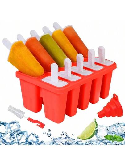 QISilicone Popsicle Molds 10cavity DIY Ice Pop Mold For Adult Teens  Ice Cream Molds For Party Yogurt Juice Smoothies Sticks - 紅色-10腔 - 查看 1