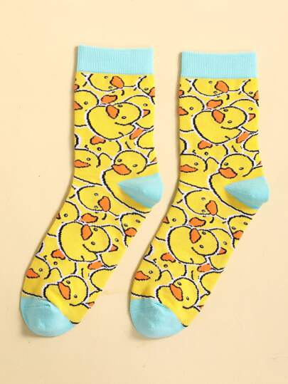 鴨子圖案中筒襪 - 彩色 - 查看 1
