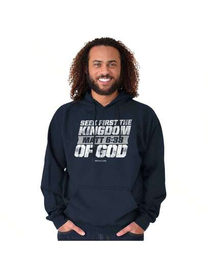先求神国引言 男式连帽衫 - 海軍 - 查看 1
