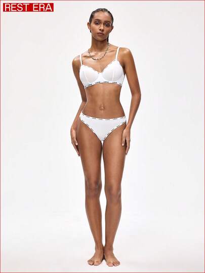 Rest Era 女士字母提花钢圈聚拢白色文胸 - 白色 - 查看 1