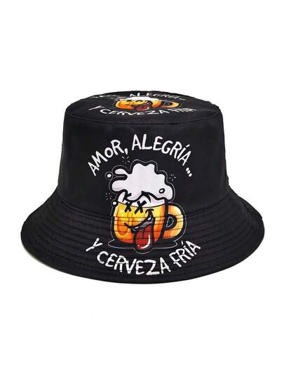 复古卡通印花双面渔夫帽,男女通用嘻哈/沙滩/户外防晒帽 - 酒杯 - 查看 10