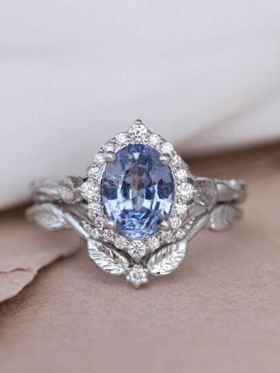 复古宫廷风女士戒指时尚叶镶嵌蓝宝石戒指,适合送礼、日常佩戴 - 寶藍色 - 查看 2