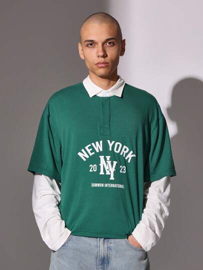 Sumwon International 运动校队橄榄球 Polo 衫学院风双层长袖运动时尚街头服饰秋冬休闲上衣 2023 系列 - 綠色 - 查看 1