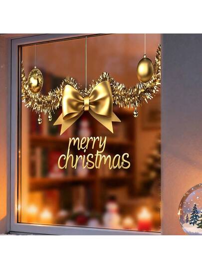 可重复使用自粘静电圣诞窗贴,蝴蝶结、心形和球形 PVC 玻璃贴纸,圣诞家居装饰,节日气氛玻璃门装饰