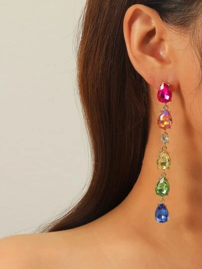 1對歐美風格多色鑽石、珍珠和流蘇設計的女士派對時尚水晶耳環 - 彩色 - 查看 23