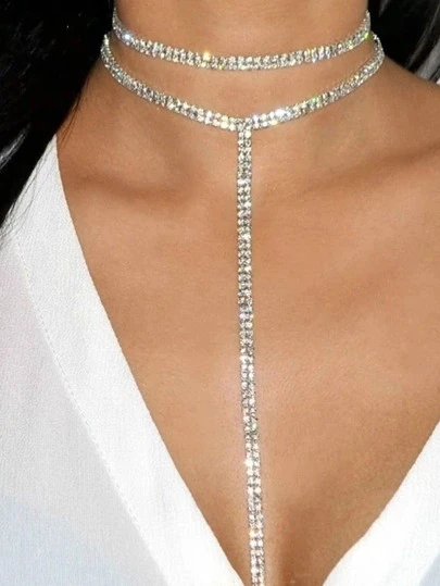 水鑽裝飾多層Y字項鍊 - 銀色 - 查看 1
