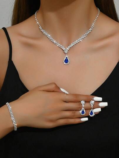水鑽水滴吊墜項鏈和耳墜和手鐲