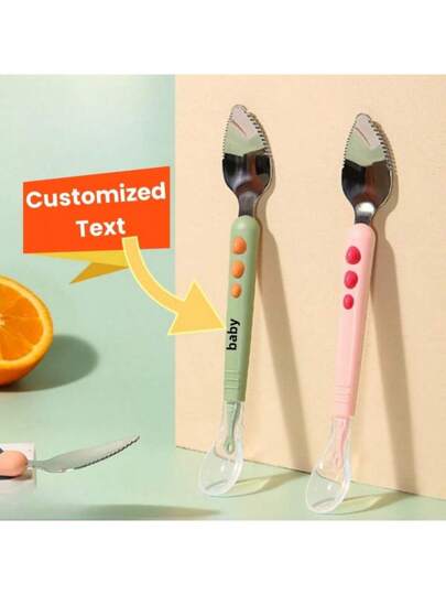 1pc 可定制双头喂食勺 婴儿勺 硅胶+不锈钢+PP材质 可爱暖心双头喂食勺 - 彩色 - 查看 2