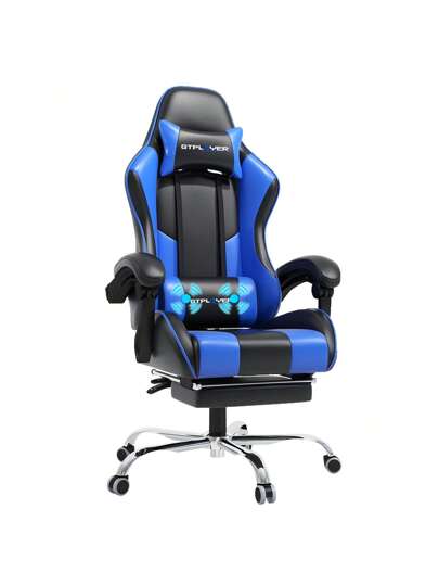 Gaming Chair, Massage Ergonomic Computer Chair With Footrest And Lumbar Support Height Adjustable Gaming Chair With 360°-Swivel Seat And Headrest For Office - 藍色 - 查看 1