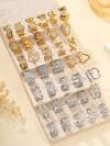 24件不锈钢时尚复古金色油压戒指混合款式,戒指款式随机,手指尺寸均为均码,适合女性日常装扮或送礼