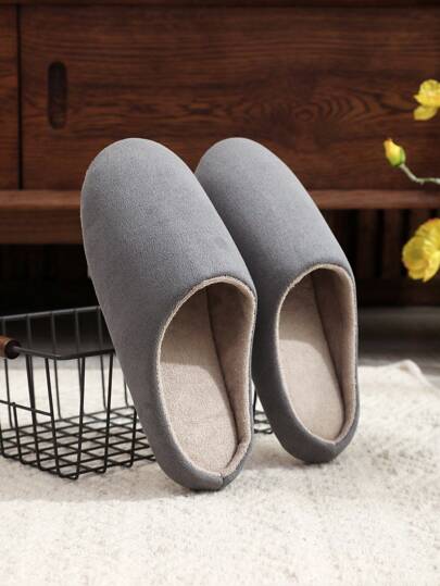 女/男家居拖鞋軟橡膠防滑耐磨厚底靜音純色情侶拖鞋,適用於室內地板 - 深灰色 - 查看 1
