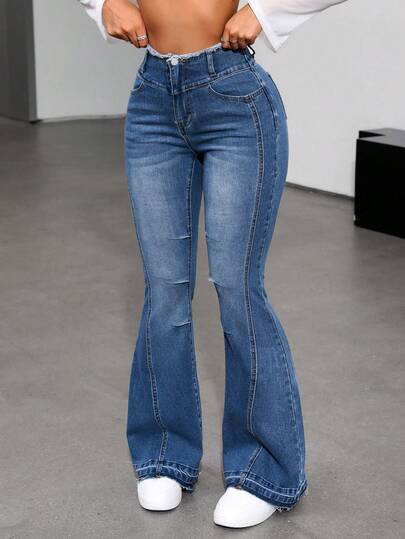 Rivivi 女士休闲毛边喇叭牛仔裤