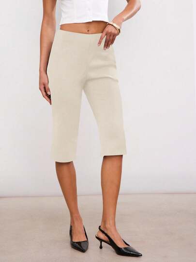 Hauture 女士夏季休闲办公室简约设计性感七分裤 - 卡其色 - 查看 1