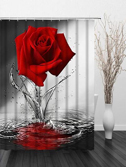 玫瑰印花防水浴簾 - 彩色 - 查看 6