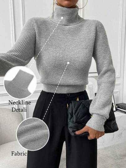 Calvaya 高领罗纹针织毛衣,长袖上衣 - 灰色 - 查看 9