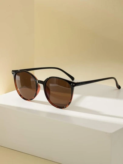 女士圆框时尚眼镜透明眼镜 - 咖啡棕 - 查看 1