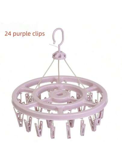 带夹子的圆形多功能袜子晾衣架,婴儿衣服晾衣架,防风袜子烘干架,用于悬挂内衣、内衣裙、裤子、鞋子、牛仔裤、靴子、裙子 - 彩色 - 查看 1